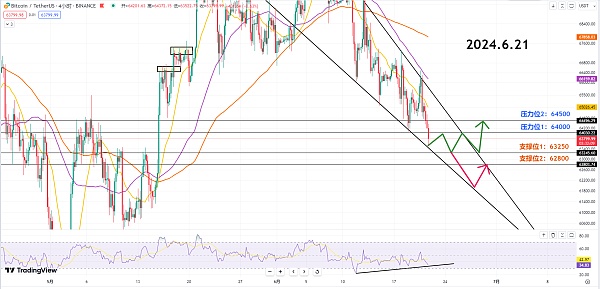 如果价格能够回升到第一阻力位,则可以保持短期反弹看多的观点,但如果价格一直在未突破并站稳64000之前仍然还是空头趋势占优。
