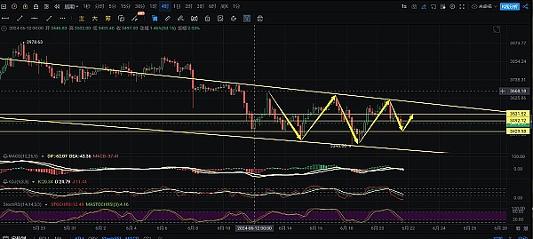 ETH参考策略:回落3430介入多单,止盈3530,止损3380