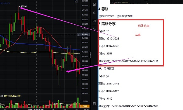 昨日行情再次验证了咱们的策略(空单吃肉,3521进场)