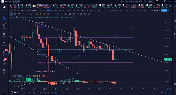 长路说币:6.24以太坊反弹受阻,3400支撑很关键