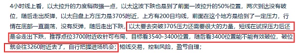 日线图上看,以太整体走势还是比大饼强一点,下跌没有到第二支撑3065附近,只到第一支撑3260附近,前面大饼在持续下跌的时候,以太一直守着3400这个支撑位不破,昨晚大饼发力,以太也就随之到达3260附近,到达后收长下影线,以太这波也能算下跌到位,大饼开始反弹,以太就不会有很深的下跌,后面的反弹以太很大机会还会去走突破,突破3977这个高位,然后刷新高点,那都是后话了,短线上,以太也将迎来反弹机会,推荐布局点位3300附近,目标看3610-3700区间,自行把握进场机会,短线交易,控制风险,盈亏自理;