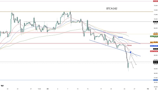 ② 回调到60,000至60,300美元附近顺势做空,目标价为59,000美元。