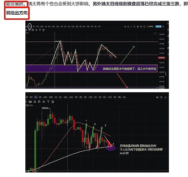 昨日以太坊日线收了跟带有长下影线的阴k。那么今日行情必定有回调,先涨后跌,上方关注压力位3420.