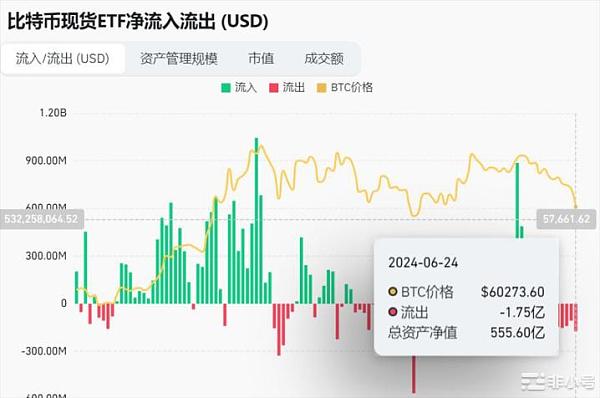 美国现货比特币ETF昨日净流出2761枚,价值1.75亿美元。