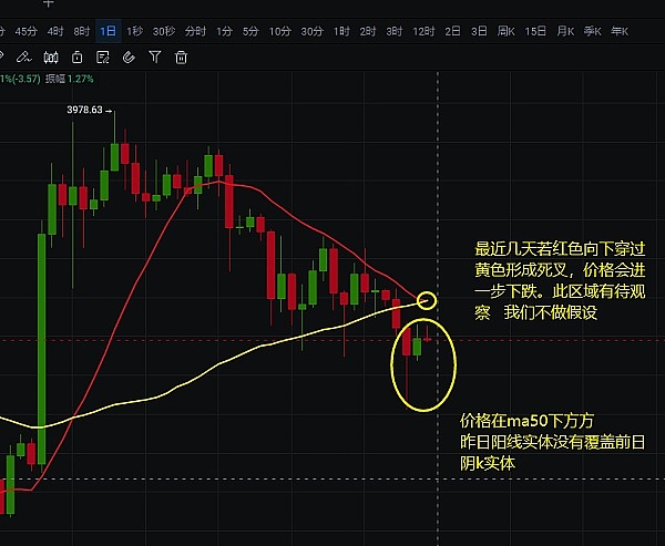 日线看价格仍然在ma50下方运行,两条均线能否形成死叉有待观察,不做假设
