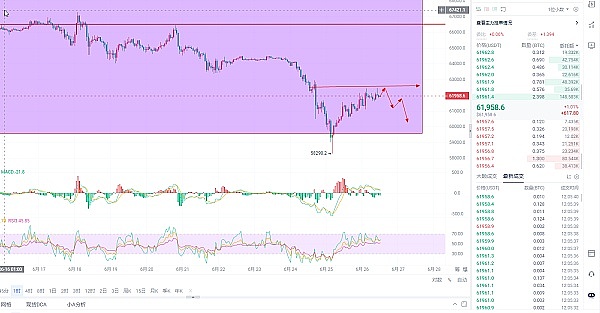 日内操作建议62200空单进场:目标60500跌破看59500附近:风控380个点:如果止损了,那么就在62700继续挂空,目标一样,风控480个点,不管做空还是做多,打合约一定要带好止损