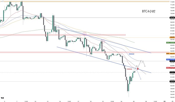 需要关注的反弹点位是: ①60,000美元 ②59,000美元 ③56,000美元如果跌破56,000美元,将形成更大的双顶形态,需要重点关注这些点位。️