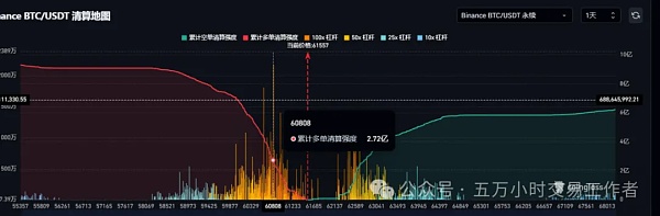 一旦跌破我们就按照我们昨天说的在考虑接多,也就是60500附近,另外BTC的多单的清算强度在60800有2.72亿美元