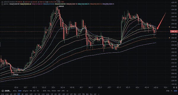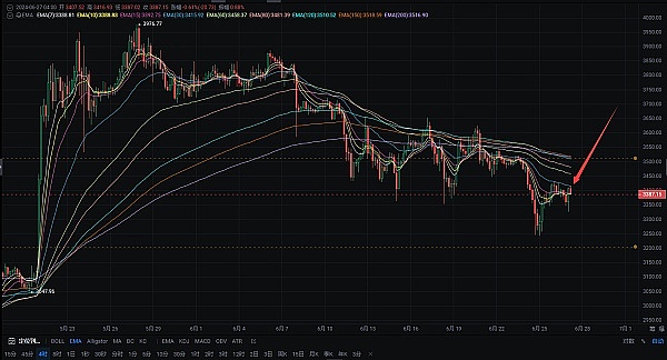 建议在3385-3415区间做空3%,上方预留3500-3520区间补仓6%,止损3535;止盈3335;破位3300-3300区间可持有到日线级别EMA150(3210-3230)位置;