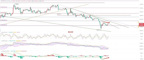 做空入场点参考63300到63500区间布局,防守64300到64500补仓空,止损400点,出场目标参考62500到62300,第二目标看61300到61500区间落袋