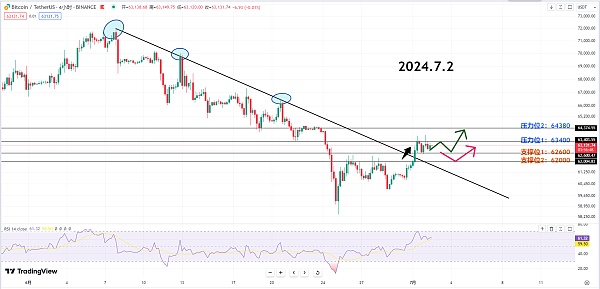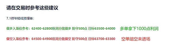 做空入场位参考:64380-64780区间分批做空 防守500点 目标63400-62600