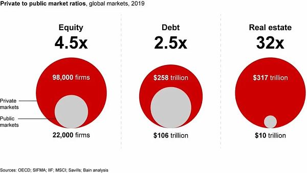 它们拥有比公共市场多2.5倍的股权和32倍的 RWAs。