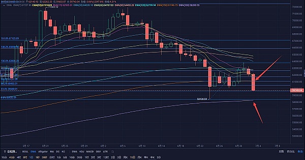 回调主空的位置也是在EMA150(61200-61400)区间;空头目标依旧关注到日线EMA200位置,破位可继续持有!