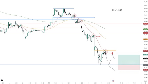 币圈金瑞7.5:市场疲软56000将失守?短期关键入场点