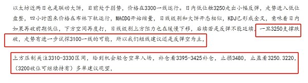 下方支撑关注3000一线,跌破预计价格还将向2900一线迈进,所以破位看2880-2930轻仓多,防守2780补仓,止盈看2980-3020区间。