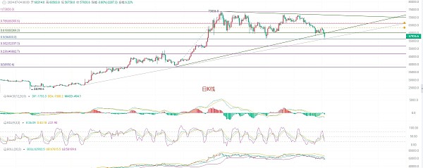 上方60300到60000区间空,止损400点,出场点参考59500到59300,破位看58500到58300落袋