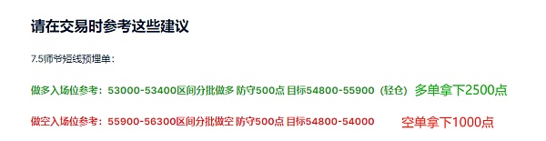 昨日师爷文章中在53000-53400区间预埋做多,行情在午间12点最低跌至了53329附近。随后晚间8点最高涨至55916,文章中多单目标54800-55900精准到达,预埋多单拿下2500点利润。