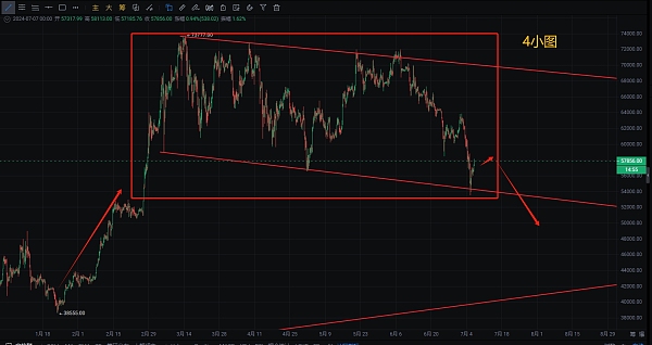 空单上方压制关注58800关建位置,反弹在58200-58500-58800给到机会空单入场,防守60100补仓,止损60500,止盈看57300-56900区域。56500破位可继续持有,多单先关注55000,轻仓空,止损400点,