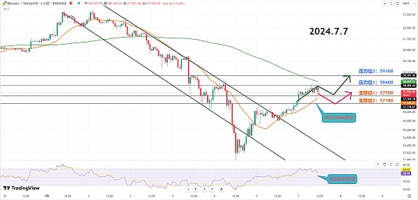 做多入场位参考:56800-57200区间分批做多 防守500点 目标58400-59000