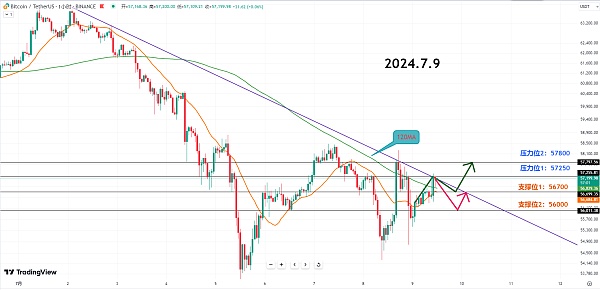 做空入场位参考:57800-58200区间分批做空 防守500点 目标56700-56000