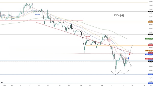 止损价:53,500美元 ,止损位未破之前,可以保持看涨