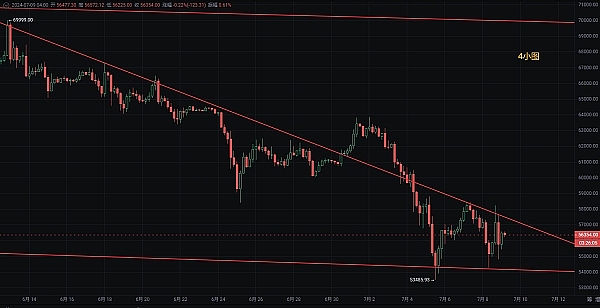 小时图来看面价格运行在BOLL带中轨窄幅震荡区间运行,MA5线开始走平,MA10与MA30均线保持小幅下压形态,也说明短期上方依然存在较多压制,加上小时线当前币价整体偏向区间震荡调整走势,日线来看各指标处于长时间破位状态,说明短期指标需要调整修复,日内回踩也是受到阻力,价格目前在56300附近运行,区间在压缩,整体来看依然趁现空头较重,日内重点关注上方关键破位情况,目前短线压制区域就是日内反弹高点,日内达到附近可轻仓空,上方关注58500,其次看59900区域,下方关注54500位置。也可参考前两日文章给出的思路,