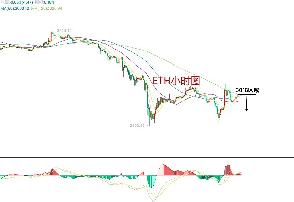 7月9日以太坊(ETH)合约技术面分析:今日方面,大周期日线级别昨日报收小阴线,K线形态连阴单阳,价格在均线下方,附图指标死叉向下放量运行,整体大趋势下跌还是非常明显的,但我们还是需要注意消息面以及价格走势带来的反抽风险,规避风险永远都是要注意且不能松懈的;短周期小时图前一日美盘下跌但没有向下破位,当前出现小幅反抽走势是修正,而破高的概率也不大,毕竟大趋势上还是下跌的走势,所以日内震荡后还是会有回撤的,因此今日ETH短线合约交易策略:现价3018区域直接空,止损3050区域,目标看2960-2940区域