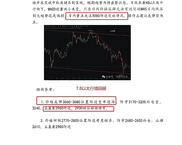 短线参考:每日更多实时单策略,在线技术学习,解套出局等可关注导师公号(币圈币先生)获取添加方式:每日前十名可获得无偿提供解套策略 1.价格反弹3100-3130位置附近空单进场,防守3230补仓空,止损3270附近,止盈看2960-2990附近,2960破位继续持有, 2.价格回踩2770位置附近考虑短多,防守2680-2650补仓,止损2610,止盈看2980附近
