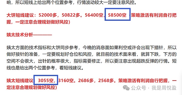 上文给出的大饼58500的空,姨太3055的空,都有不错的收获