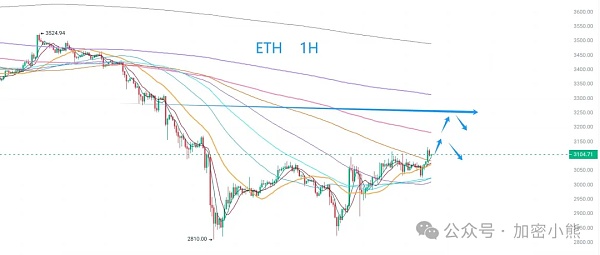 ETH的这笔反弹接近昨天给的压力区间3188~3256,线下的上涨在常规波动中很难持续,短线建议逢高先出,等小时线突破构筑第二个横盘区域之后再考虑二次买入。压制区域3173~3256,短线支撑3033!