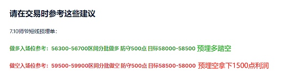 昨日师爷在59500-59900区间的预埋空单,午后1点后行情最高涨至了59449附近。随后凌晨的行情最低跌到了57000附近,文章中预埋空单拿下1500点利润。而昨日的预埋多单没有给到进场的机会,导致踏空未进场。