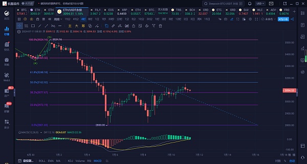 以太坊行情分析:上周行情走出大阴线,再次回踩下轨附近获得支撑反弹,从周技术面上看,技术指标有拐头向上的走势,而日线方面也同样有双针探底的走势,行情有反弹上方周线20日均线3220附近压制的趋势,日线连续三连阳,MACD也有缩量反弹的走势,若今天能够顺利突破上方10日均线的压制,那么将继续反弹。后期有着以太坊ETF上市的的推动,行情将有机会来一波反弹。