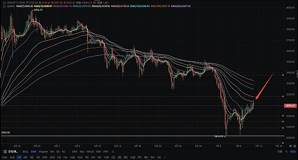 综上所述比特币已经实现提前破位,那么以太也会延续他的节奏,所以操作上也是反弹继续空。已经入场空单的依旧考虑在4小时线EMA80(3180-3200)区间补仓;多单继续考虑破位前低再说!