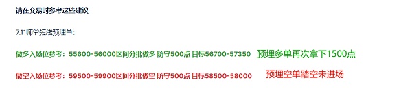 昨日师爷在59500-59900区间的预埋空单,晚间8点公布CPI后行情最高涨至了59780附近。随后凌晨的行情最低跌到了57000附近,文章中预埋空单也再次拿下了1500点利润。而昨日的预埋多单没有给到进场的机会,导致踏空未进场。
