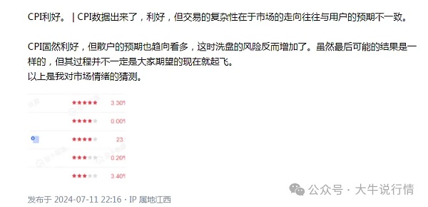 昨晚八点半美国公布了六月份的CPI数据,是低于预期,低于前值的。这一消息是利好的,按理来说利好消息落地比特币价格是要上涨的,这是大部分人的认知,但是最终价格其实是下跌的,从最高点59780跌至目前最低56500。昨晚我们也是提示了风险,CPI固然利好,但散户的预期也趋向看多,这时候就需要警惕洗盘的风险了。你以为你拿着一个大家都能看到的一个数据,一个消息,就跟发现了惊天秘密一样,不至于,最终还得是技术,咱们数据也要看,但不靠这个炒币。