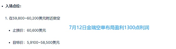 币圈金瑞7.12:空单布局再次精准斩获 注意小级别头肩顶走势