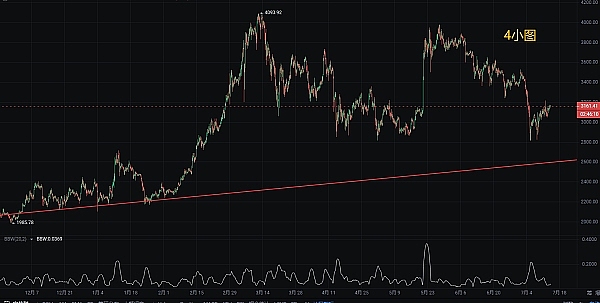 4小时线当前BOLL带整体轨道和MA30均线持续向上,给到价格反弹受限,加上当前成交量薄弱,行情偏向小幅区间震荡调整,当前以太坊关键压制参考在3230-3060线,只要震荡调整站不稳上方任意压制,后续币价依然有下跌风险 所以近期走势而言看法还是保持短线波段,围绕高空思路为主。 短线参考: 1.反弹3170-3200位置附近空单进场,防守3295补仓空,止损3340附近,止盈看3080-3100附近, 2.多单关注3040关口位置,回调3080-3060附近考虑短多,止盈看3130上方,止损3030,