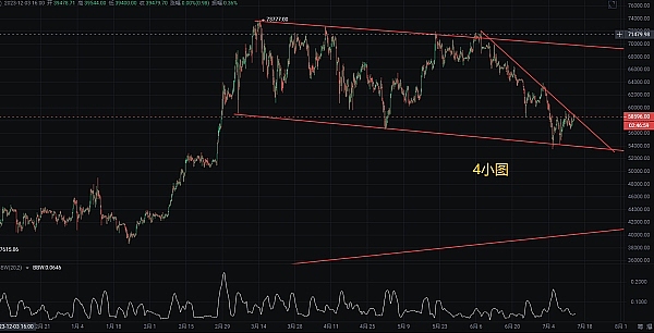 多单先关注56500,轻仓多,防守55300附近补仓,止损54900附近,