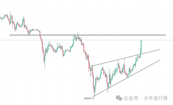 短线上60000转变为强支撑,63700强压力,突破压力位市场框架转变,大方向持续看涨不变,现货最低目标70000附近,上方目标依旧保持在82000,注意市场多头最后的狂飙,短线合约60000上低多。
