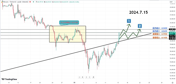 做多入场位参考:60700-61100区间分批做多 防守500点 目标61950-62600