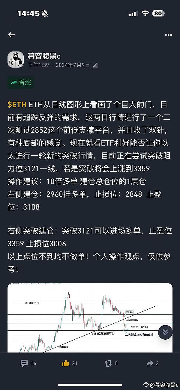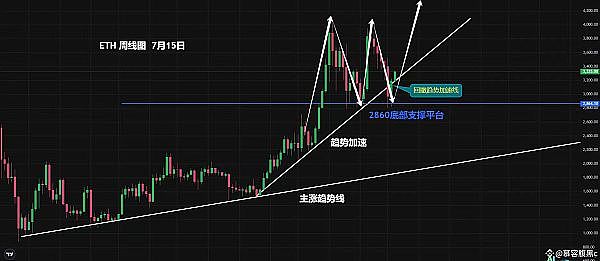 $ETH 刚刚看了一下以太坊的周线级别,2860这个位置回踩了7次,都得到了有效的支撑,目前看是调整完毕了,周线级别大概率是走W形态。这轮上去应该是破新高了。再加上个ETF的利好消息推动,后续的持续性资金流入将会有一波大幅上升的空间去破年内新高。