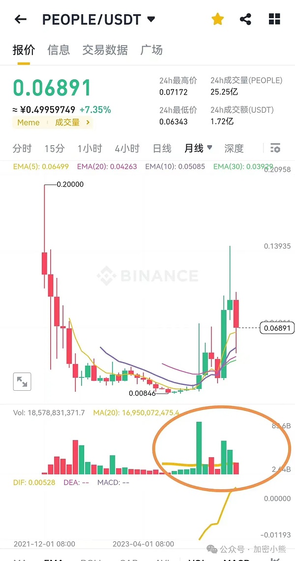 2、看画圈部位,明显抄底的人比较多,但是出货量完全不成正比,所以羡羡认为这个币前景不错!