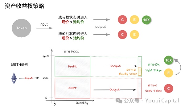10X-token:代表收益代币,享有捕获池子整体盈利的权益,最大发行量为池价值的10%。获得方式有三种:1)水下时投入资产获得铸造10X;2)E-token兑换;3)二级市场交易,例如Uniswap。