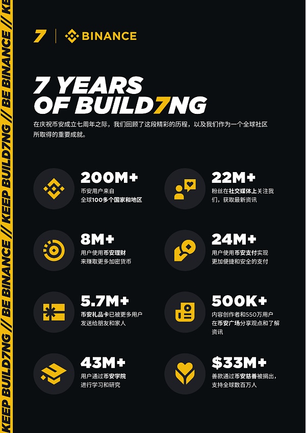 “以一般标准而言,成立七年的公司大多还是处于成长初期,是怀有抱负的初创企业;但在加密资产行业,成立七年的公司,且在这期间几乎一直维持着领导者的地位,币安已然成为了极具经验的行业老兵,在这一历史上变化最为快速的产业内,历经各种发展时期得以生存与繁荣。”Richard写到。