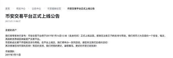 这2亿用户是怎么来的?让我们把时钟拨到2017年7月14日12:00(北京时间)。币安交易平台正式上线。几句话的简单公告,用了三个惊叹号,这可能就是CZ当时下定的决心。