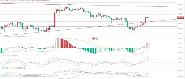 下方3350到3330布局多,防守3250到3270补仓多,目标3350到3400区间,破位看3450到3500区间落袋,止损3230点