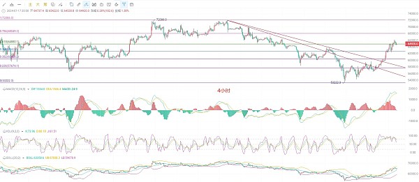 上方65500到66000空,止损500点,目标64000到64500,破位看62000到63000区间落袋,