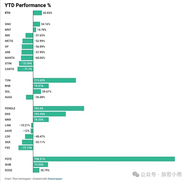 (2)L2代币的表现普遍不如ETH,投资L2不如直接投资ETH