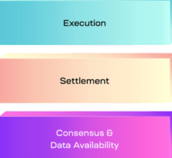 **1.共识层:**整体区块链需要达成共识才能进行下一步操作。共识层主要解决的问题是如何保证所有节点对交易的处理结果无异议,并将新的区块添加到链上。不同的共识机制采用了不同的方法来实现共识,包括工作量证明(PoW)、权益证明(PoS)等。例如,在 PoW 共识机制中,所有的节点都参与一个难题计算的过程,第一个完成计算的节点便有权将新的区块添加到区块链上,并获得相应的奖励。2.数据可用性:整体区块链通过去中心化的存储方式,解决了单点故障、恶意攻击等问题。在数据可用性方面,区块链采用了类似复制的方式,将每个节点的本地存储设为一个完整的副本。这样在发生节点宕机或网络分区等情况时,其他节点可以继续访问数据、读取历史记录,从而保证数据的可用性。**3.执行层:**整体区块链的执行层主要处理交易的执行过程。在整体区块链中,交易支持智能合约功能,可以通过代码自动执行与转移资产等各种操作。每个节点都会对交易进行验证和执行,并且确保在执行过程中符合预设的规则和条件。所以,整体区块链就是将共识层、数据可用性、结算,和执行,组合成一条单链。(类似于我们玩成语接龙的游戏。所有的数据都要经过从区块头到区块尾的一步步衔接)这严重阻碍了其速度。大多数Layer都会牺牲其公链的扩展性,来换取其公链的去中心化和安全性。其所有职责集都在一个层上处理,无需使用第三方服务。