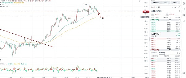 7月23:Mt. Gox 比特币钱包在市场紧缩的情况下转移了价值 28.2 亿美元的 BTC一个引人注目的举动是,臭名昭著的加密货币交易所 Mt. Gox 的一个钱包将价值约 28.2 亿美元的约 42,587.49 比特币转移到一个未知地址。链上数据平台 Arkham Intelligence 报告的这笔交易似乎是 Mt. Gox 继续偿还债权人的努力的一部分,偿还总额约为 90 亿美元。就在前一天,这家已停业的交易所又转移了价值 1,400 美元的比特币,Bitstamp 被确定为收款地址之一。Mt. Gox 的受托人选择了多家加密货币交易所,协助将比特币分配给债权人。其中,Bitstamp 最为知名,该公司宣布计划在收到代币后立即将其分配给债权人。上周,另一家被选中的交易所 Kraken 已经分配了其份额的代币。与此同时,两家日本交易所 Bitbank 和 SBI VC Trade 迅速管理了分配的资金,并在收到后不久进行了分配。这种结构化的比特币分配是 Mt. Gox 履行其对债权人的财务义务的更广泛战略的一部分。2014 年,Mt. Gox 在几次黑客事件中损失了约 850000 比特币,随后申请破产。Mt. Gox 最近的转账行为对比特币市场产生了显著影响。7 月 22 日,比特币价格一度达到 68,500 美元的峰值,随后在 Mt. Gox 大幅转移 BTC 的消息传出后回落至 66500。这种波动凸显了 Mt. Gox 对比特币价格的影响力仍然很强。值得注意的是,随着比特币主导地位的上升,它对山寨币的影响也越来越大,从而引发更广泛的市场连锁反应。目前,比特币交易价格约为 66545,支撑位为 65000,阻力位为 68500。昨天晚间8点30直播间给到大家67800做空,目标66600,66500接多,目标67500-68000,多空双杀最高斩获2700个点的收益,大家可以去看我的直播回放今天操作思路反弹做空位为主,反弹67000空单进场:目标65200:风控带760个点65200接多:风控380个点,目标1000个点以上